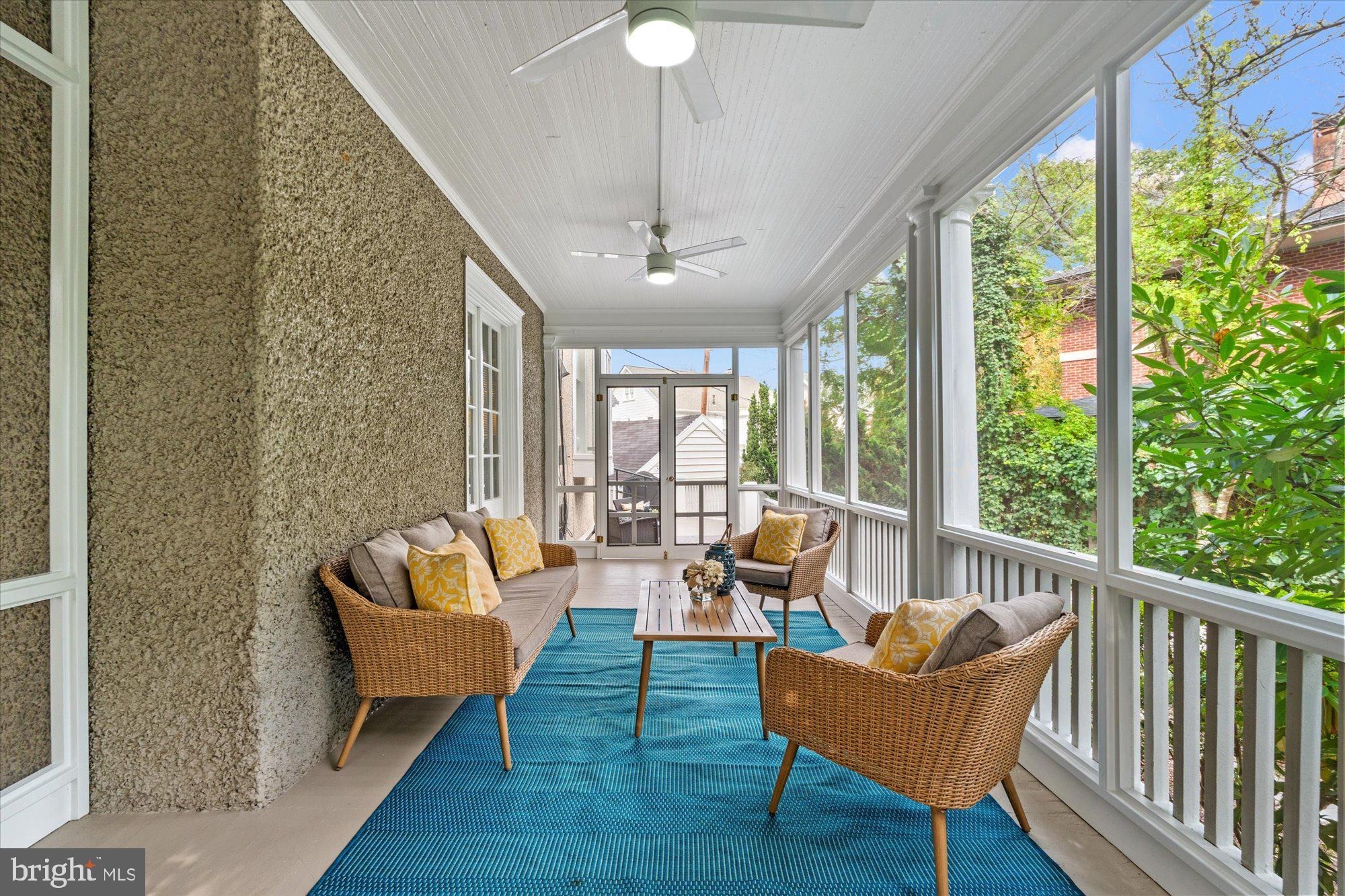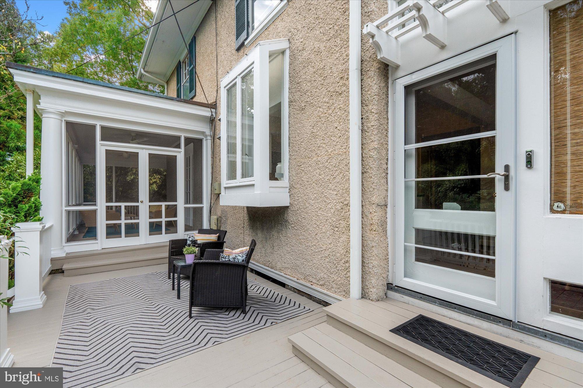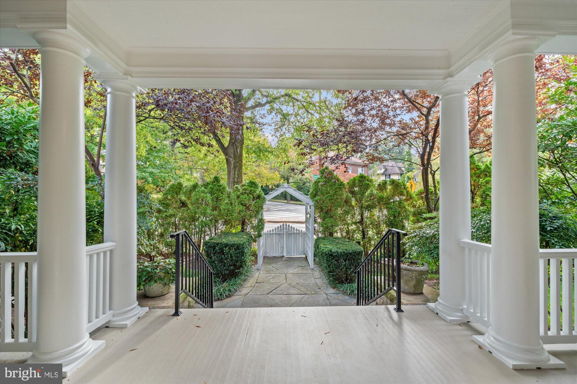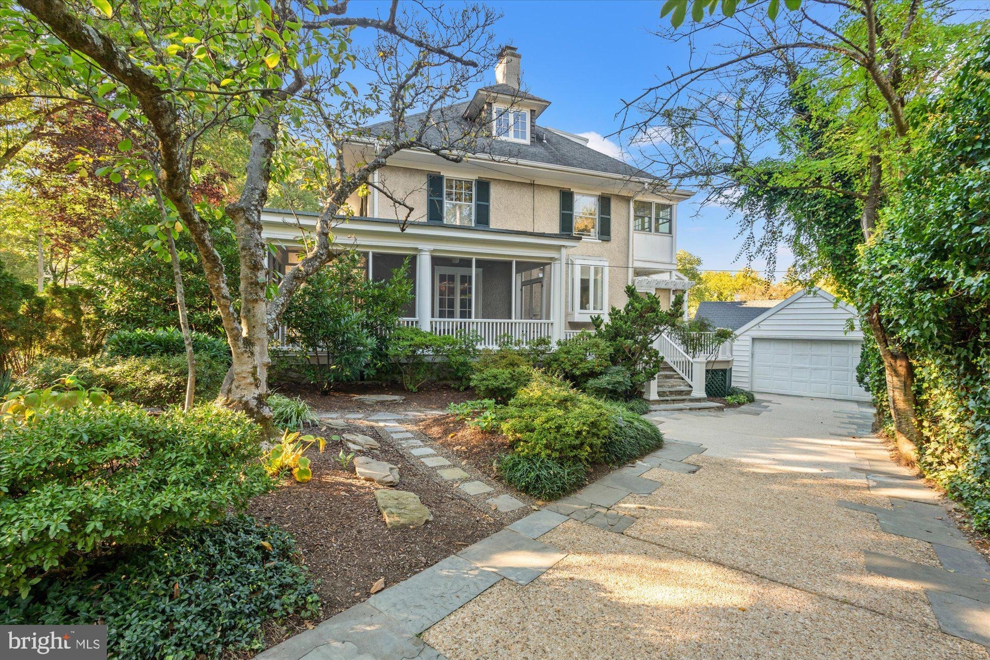 Welcome to this exquisitely renovated Colonial in the heart of sought-after Chevy Chase. Blending classic architectural charm with modern updates, this home showcases original details like stately columns, arched doorways, and soaring ceilings, all surrounded by lush, mature landscaping. Step through the elegant foyer into a warm and inviting living room with a wood-burning fireplace and access to a serene screened porch. The first floor also features a versatile den—perfect as an office or playroom—and a formal dining room with a bay window, beamed ceiling, and wainscoting, offering an ideal space for entertaining. The expansive chef’s kitchen impresses with white cabinetry, granite countertops, stainless steel appliances, and a wine refrigerator. A cozy breakfast nook with a wrap-around bench opens to the back deck, grilling area, and patio—an ideal setup for outdoor gatherings, with potential to add a grassy play space. Upstairs, the spacious primary suite features a sitting area, a walk-in closet plus a double closet, and a beautifully renovated bath with a double vanity, soaking tub, and walk-in shower with seating. Two additional bedrooms and a stylishly updated hall bath complete this level. The top floor offers even more flexibility with two bedrooms, an office area, and a full bath. The finished lower level adds a large recreation or guest room, a kitchenette, and a full bath—perfect for visitors or extended stays. Additional highlights include a one-car garage and off-street parking for two vehicles. Ideally located within walking distance of Murch Elementary, Deal Middle, and Jackson-Reed High, and just moments from shops, restaurants, parks, and the Metro, this Chevy Chase gem perfectly balances historic elegance with modern comfort and unbeatable walkability.