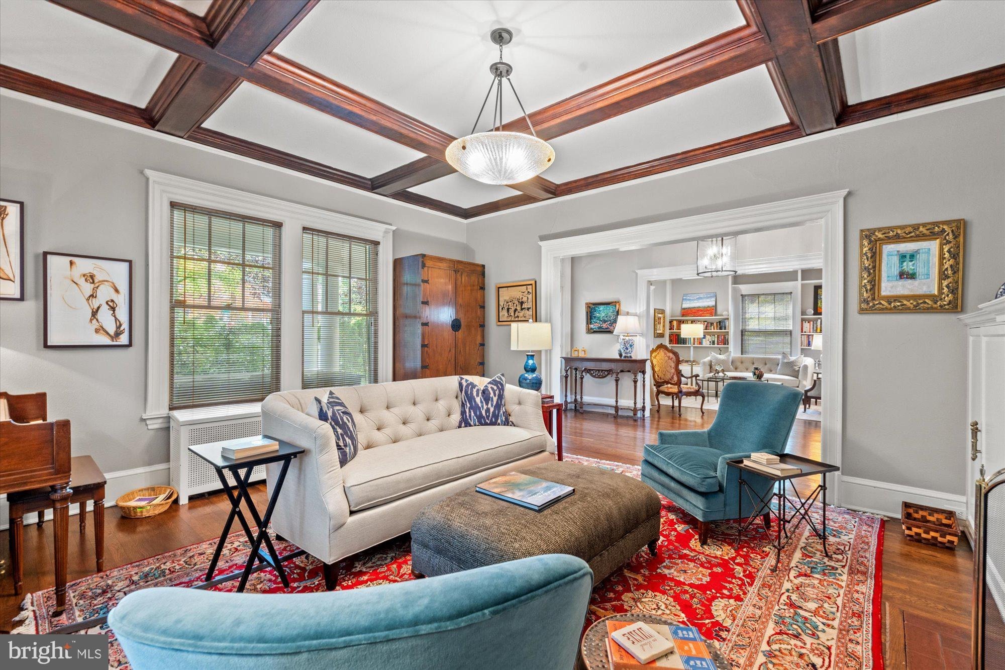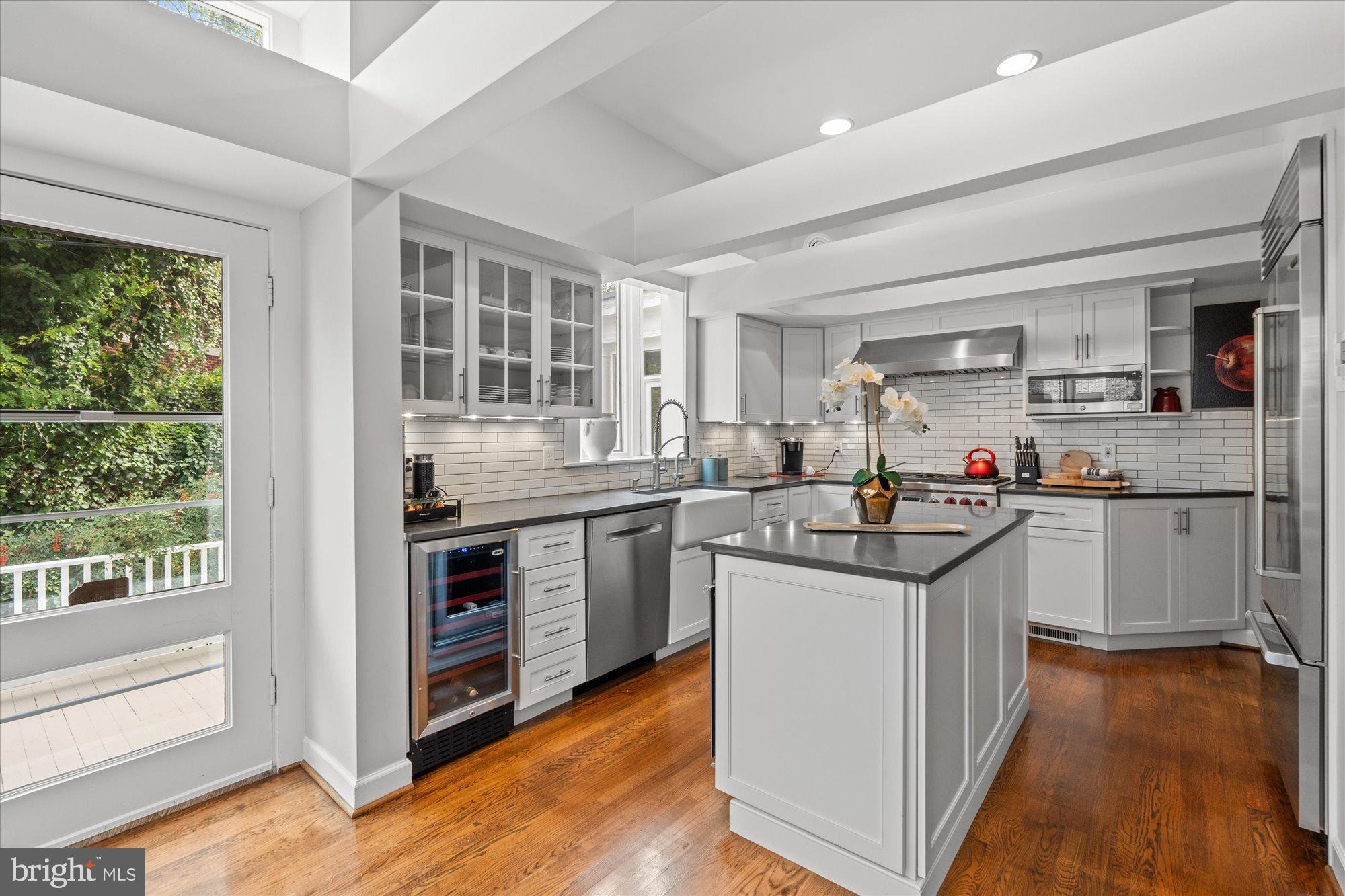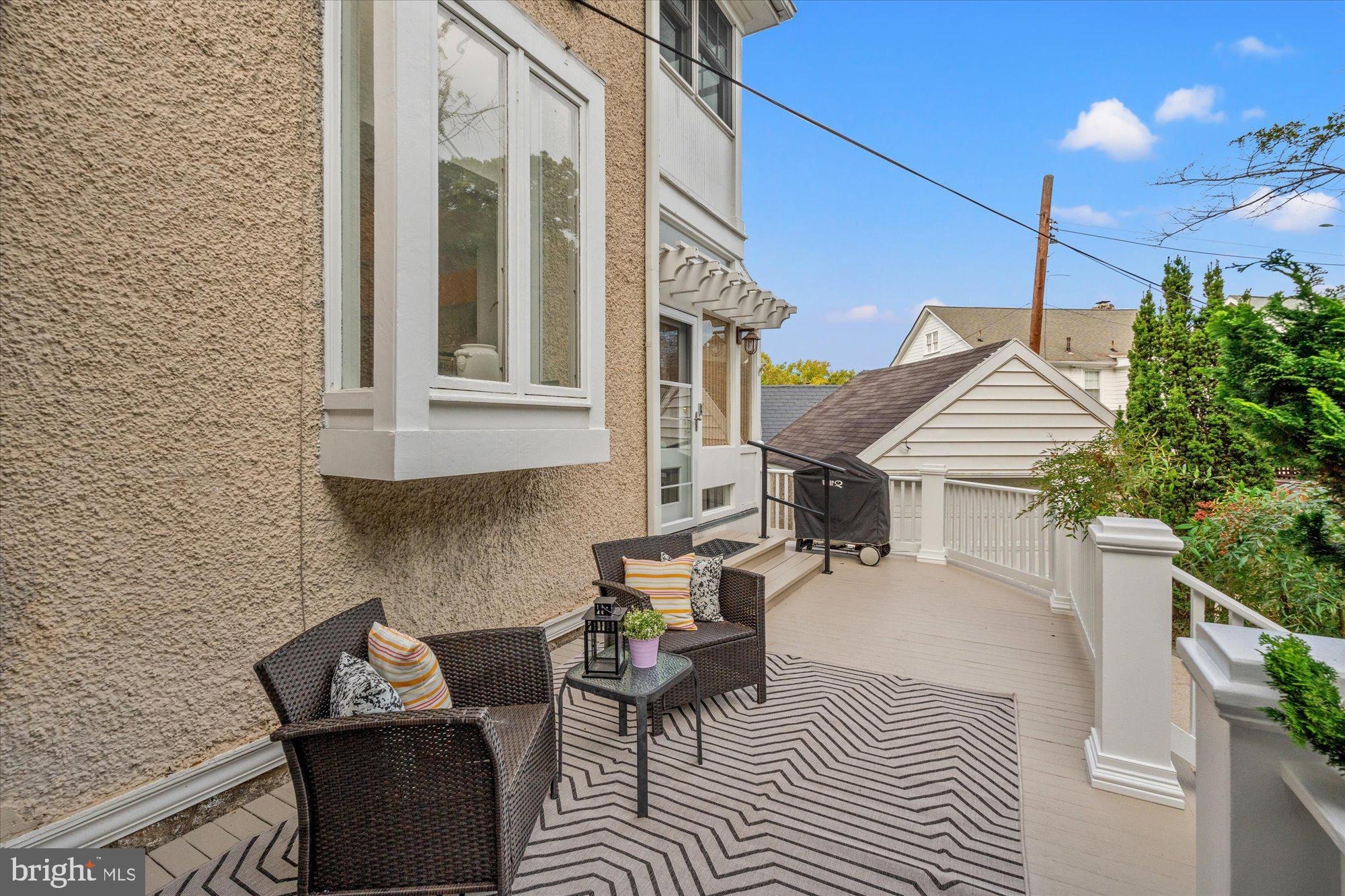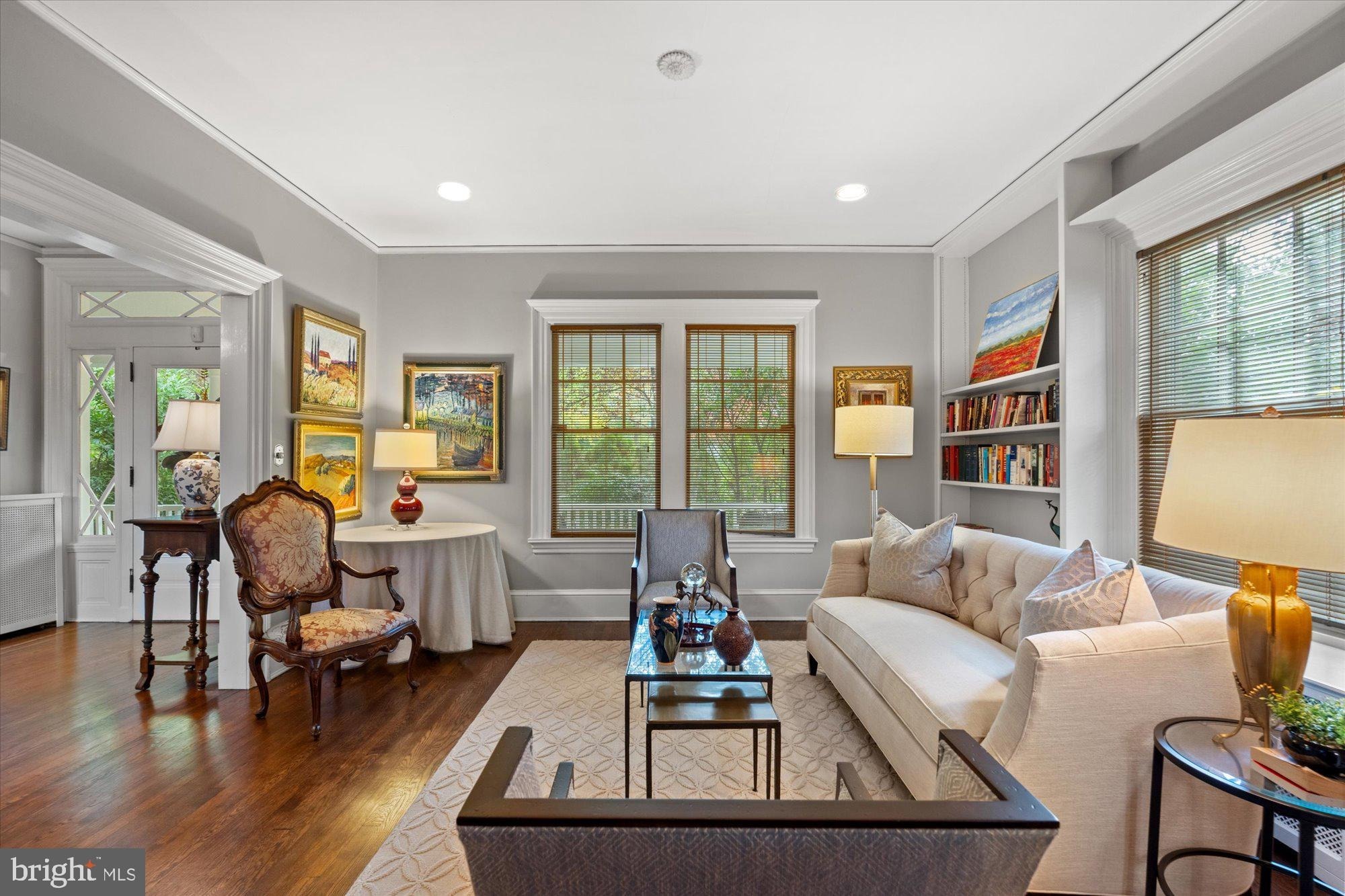 Welcome to this exquisitely renovated Colonial in the heart of sought-after Chevy Chase. Blending classic architectural charm with modern updates, this home showcases original details like stately columns, arched doorways, and soaring ceilings, all surrounded by lush, mature landscaping. Step through the elegant foyer into a warm and inviting living room with a wood-burning fireplace and access to a serene screened porch. The first floor also features a versatile den—perfect as an office or playroom—and a formal dining room with a bay window, beamed ceiling, and wainscoting, offering an ideal space for entertaining. The expansive chef’s kitchen impresses with white cabinetry, granite countertops, stainless steel appliances, and a wine refrigerator. A cozy breakfast nook with a wrap-around bench opens to the back deck, grilling area, and patio—an ideal setup for outdoor gatherings, with potential to add a grassy play space. Upstairs, the spacious primary suite features a sitting area, a walk-in closet plus a double closet, and a beautifully renovated bath with a double vanity, soaking tub, and walk-in shower with seating. Two additional bedrooms and a stylishly updated hall bath complete this level. The top floor offers even more flexibility with two bedrooms, an office area, and a full bath. The finished lower level adds a large recreation or guest room, a kitchenette, and a full bath—perfect for visitors or extended stays. Additional highlights include a one-car garage and off-street parking for two vehicles. Ideally located within walking distance of Murch Elementary, Deal Middle, and Jackson-Reed High, and just moments from shops, restaurants, parks, and the Metro, this Chevy Chase gem perfectly balances historic elegance with modern comfort and unbeatable walkability.