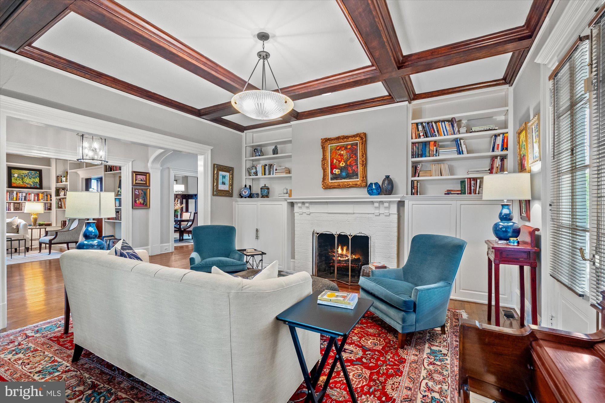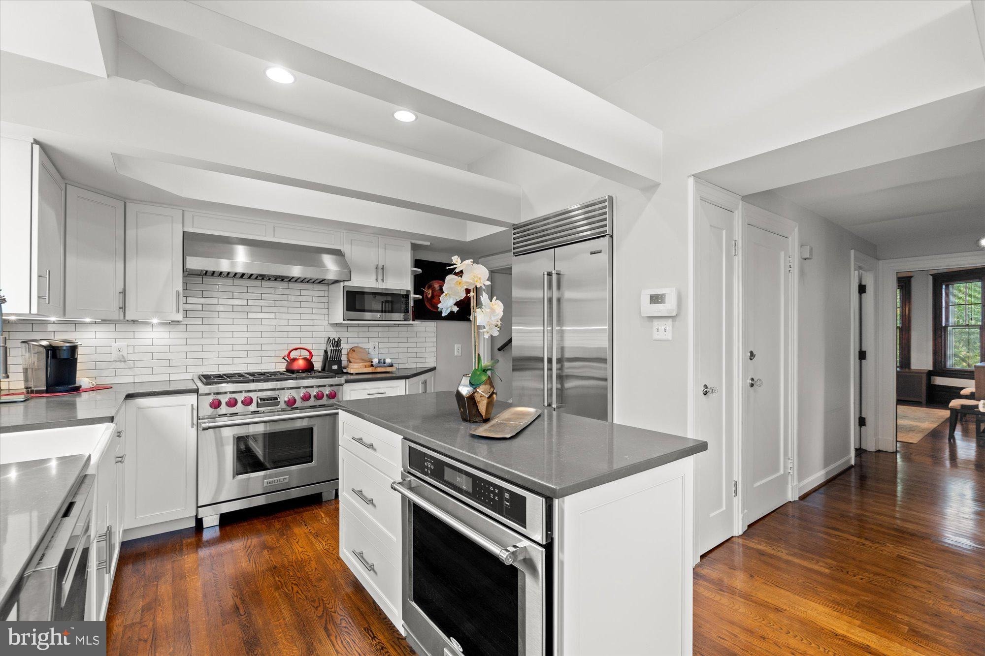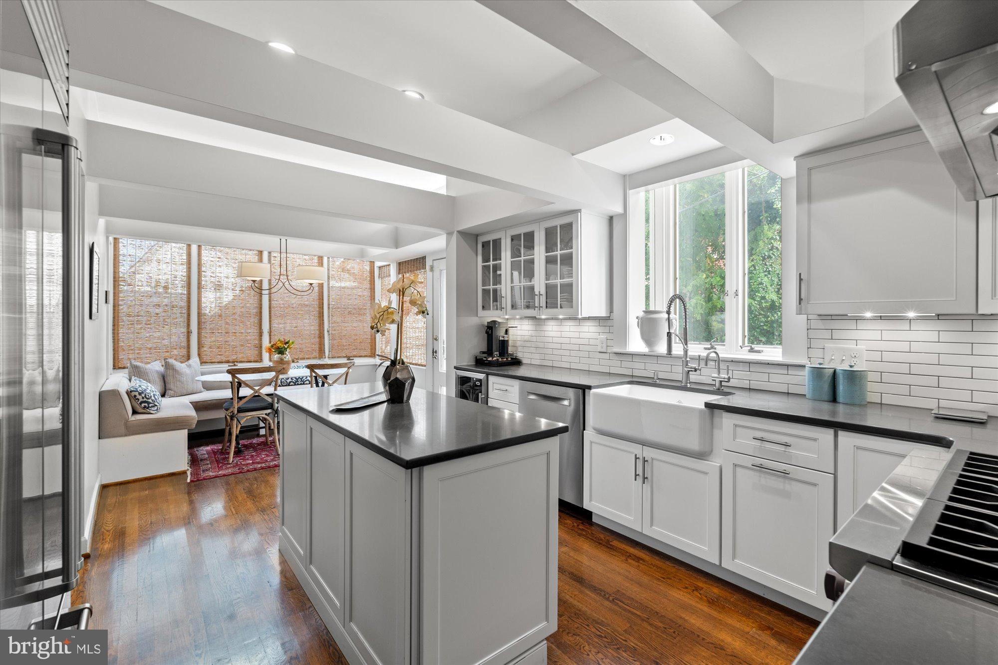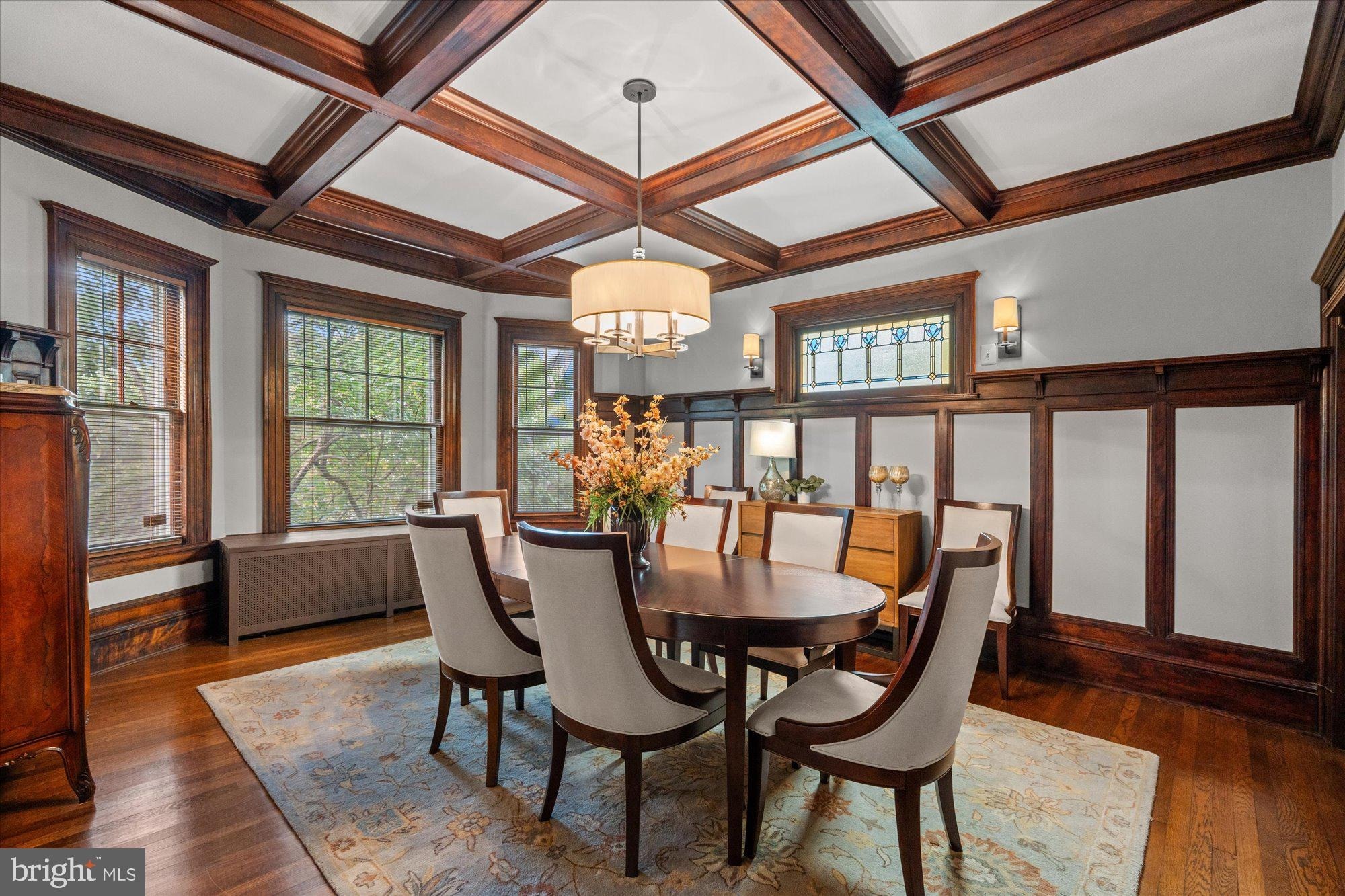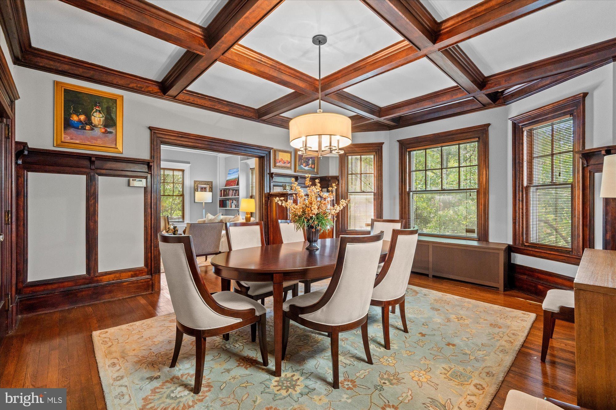 Welcome to this exquisitely renovated Colonial in the heart of sought-after Chevy Chase. Blending classic architectural charm with modern updates, this home showcases original details like stately columns, arched doorways, and soaring ceilings, all surrounded by lush, mature landscaping. Step through the elegant foyer into a warm and inviting living room with a wood-burning fireplace and access to a serene screened porch. The first floor also features a versatile den—perfect as an office or playroom—and a formal dining room with a bay window, beamed ceiling, and wainscoting, offering an ideal space for entertaining. The expansive chef’s kitchen impresses with white cabinetry, granite countertops, stainless steel appliances, and a wine refrigerator. A cozy breakfast nook with a wrap-around bench opens to the back deck, grilling area, and patio—an ideal setup for outdoor gatherings, with potential to add a grassy play space. Upstairs, the spacious primary suite features a sitting area, a walk-in closet plus a double closet, and a beautifully renovated bath with a double vanity, soaking tub, and walk-in shower with seating. Two additional bedrooms and a stylishly updated hall bath complete this level. The top floor offers even more flexibility with two bedrooms, an office area, and a full bath. The finished lower level adds a large recreation or guest room, a kitchenette, and a full bath—perfect for visitors or extended stays. Additional highlights include a one-car garage and off-street parking for two vehicles. Ideally located within walking distance of Murch Elementary, Deal Middle, and Jackson-Reed High, and just moments from shops, restaurants, parks, and the Metro, this Chevy Chase gem perfectly balances historic elegance with modern comfort and unbeatable walkability.
