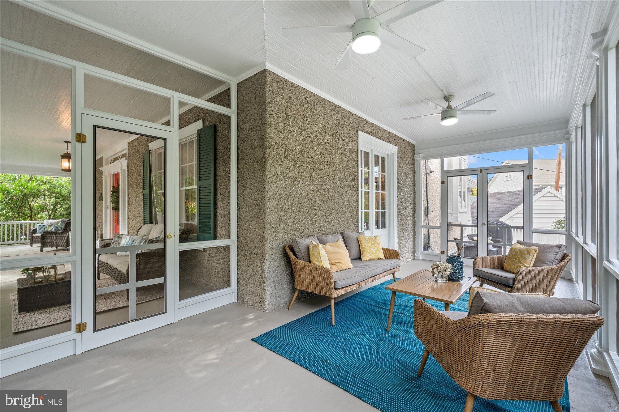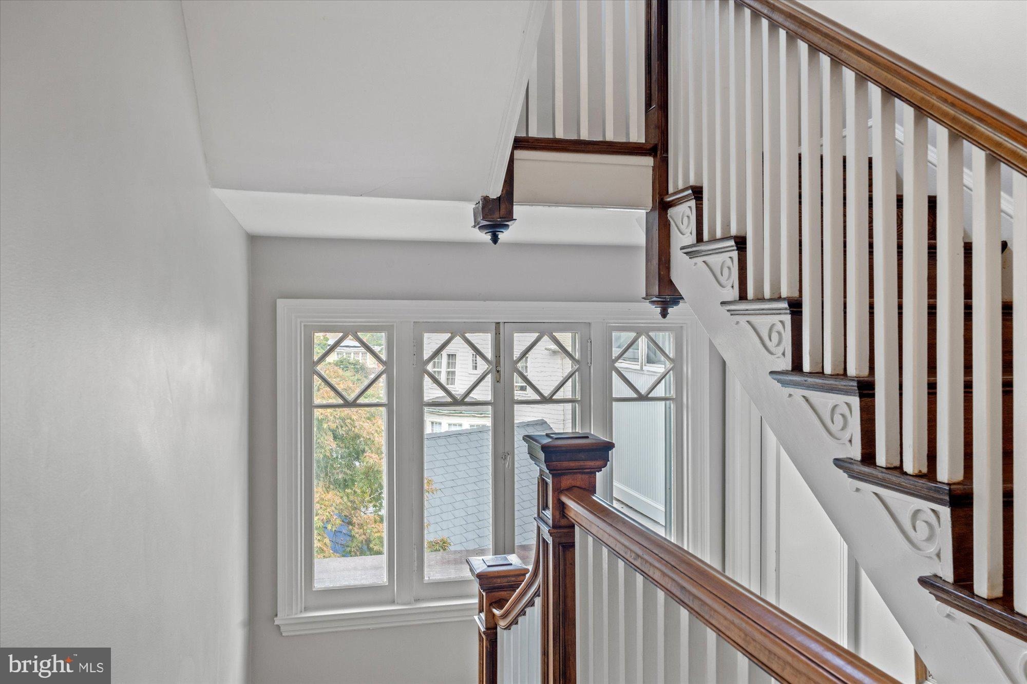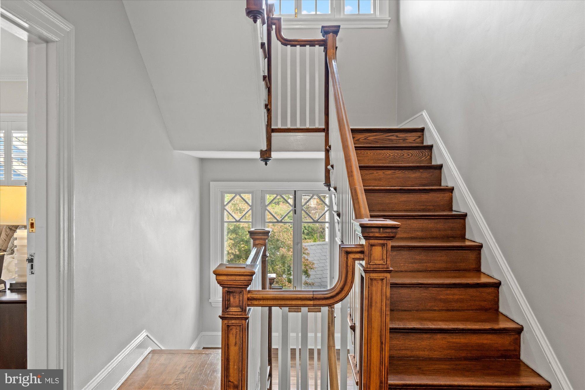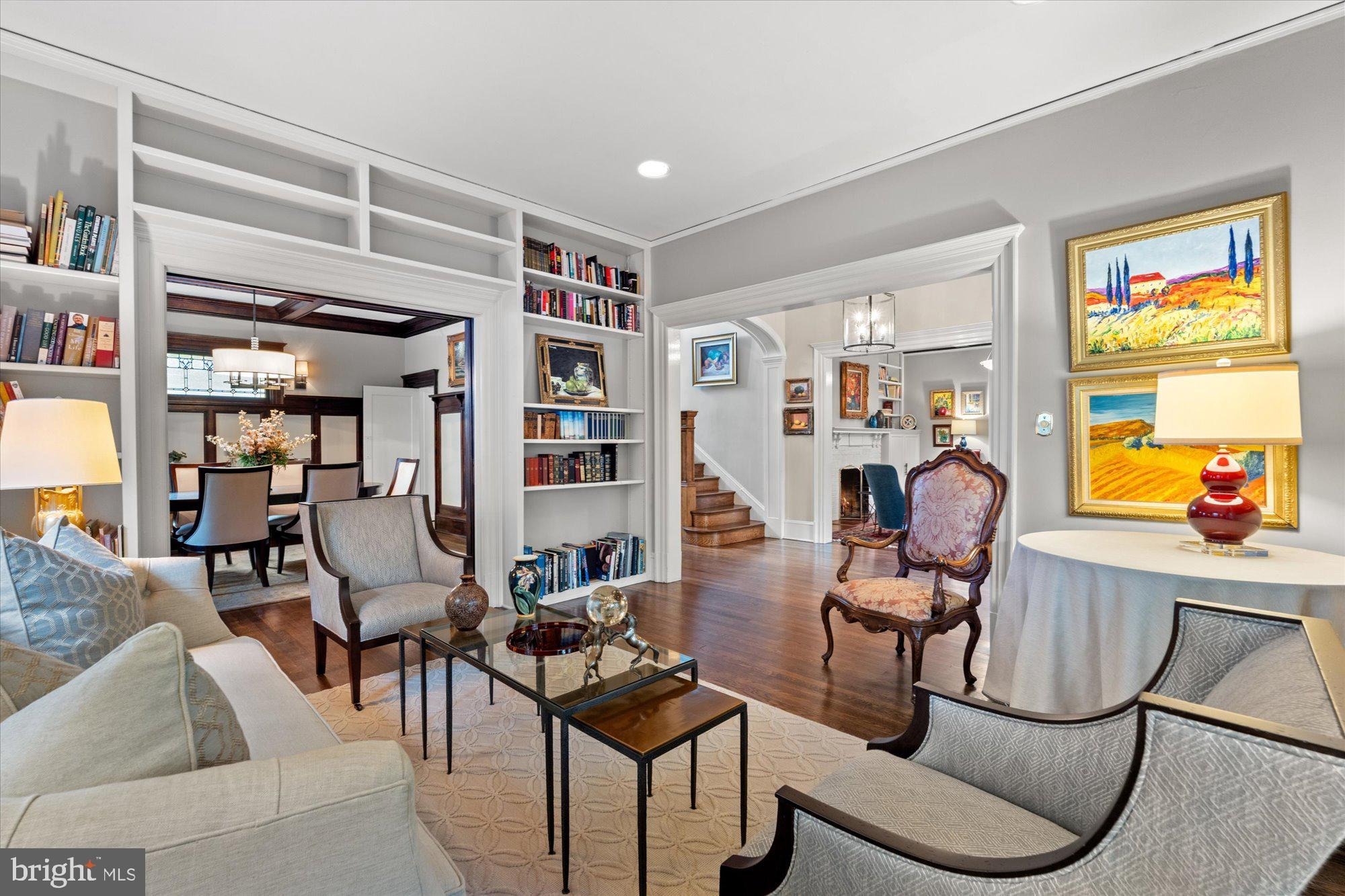 Welcome to this exquisitely renovated Colonial in the heart of sought-after Chevy Chase. Blending classic architectural charm with modern updates, this home showcases original details like stately columns, arched doorways, and soaring ceilings, all surrounded by lush, mature landscaping. Step through the elegant foyer into a warm and inviting living room with a wood-burning fireplace and access to a serene screened porch. The first floor also features a versatile den—perfect as an office or playroom—and a formal dining room with a bay window, beamed ceiling, and wainscoting, offering an ideal space for entertaining. The expansive chef’s kitchen impresses with white cabinetry, granite countertops, stainless steel appliances, and a wine refrigerator. A cozy breakfast nook with a wrap-around bench opens to the back deck, grilling area, and patio—an ideal setup for outdoor gatherings, with potential to add a grassy play space. Upstairs, the spacious primary suite features a sitting area, a walk-in closet plus a double closet, and a beautifully renovated bath with a double vanity, soaking tub, and walk-in shower with seating. Two additional bedrooms and a stylishly updated hall bath complete this level. The top floor offers even more flexibility with two bedrooms, an office area, and a full bath. The finished lower level adds a large recreation or guest room, a kitchenette, and a full bath—perfect for visitors or extended stays. Additional highlights include a one-car garage and off-street parking for two vehicles. Ideally located within walking distance of Murch Elementary, Deal Middle, and Jackson-Reed High, and just moments from shops, restaurants, parks, and the Metro, this Chevy Chase gem perfectly balances historic elegance with modern comfort and unbeatable walkability.