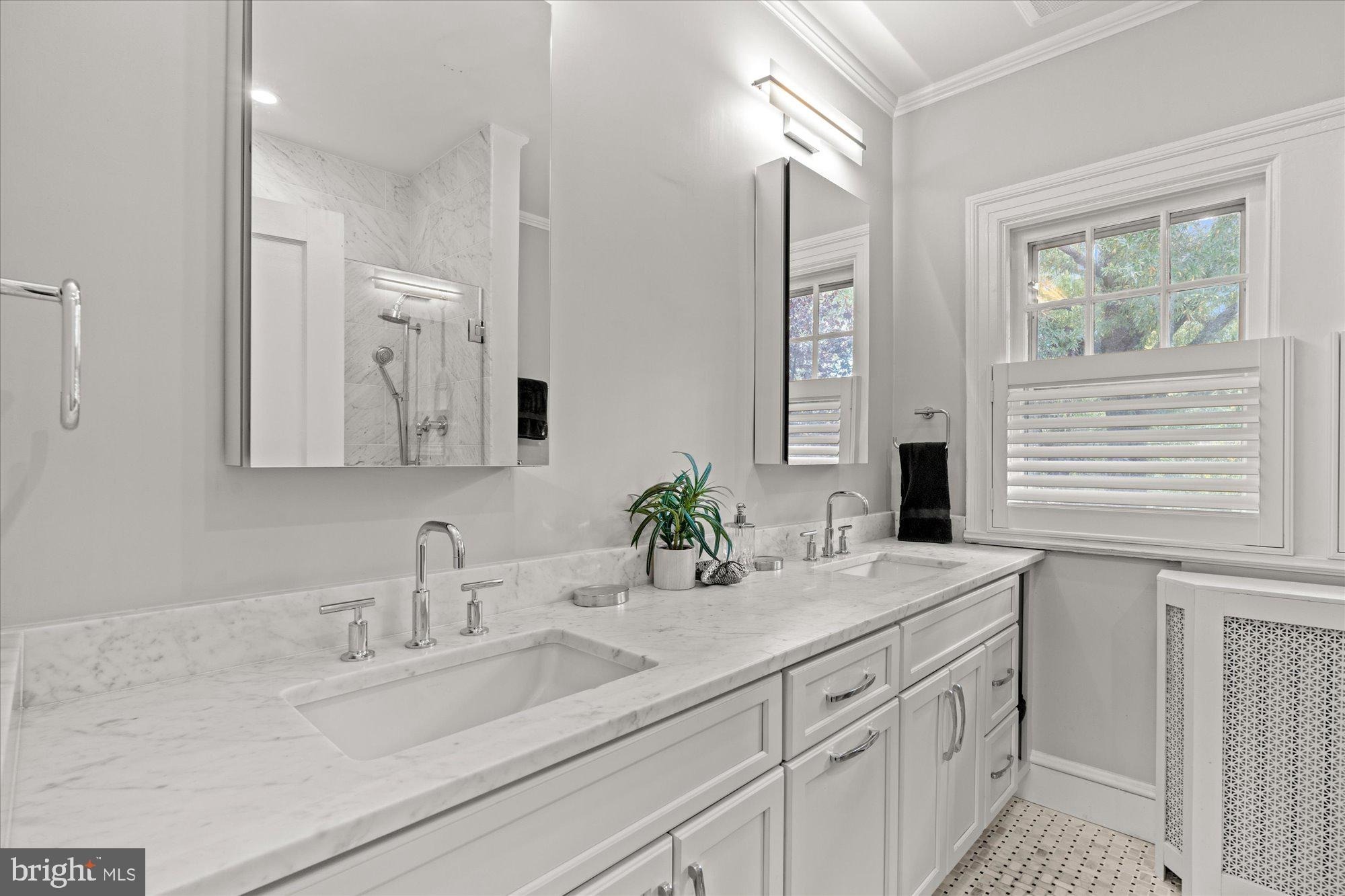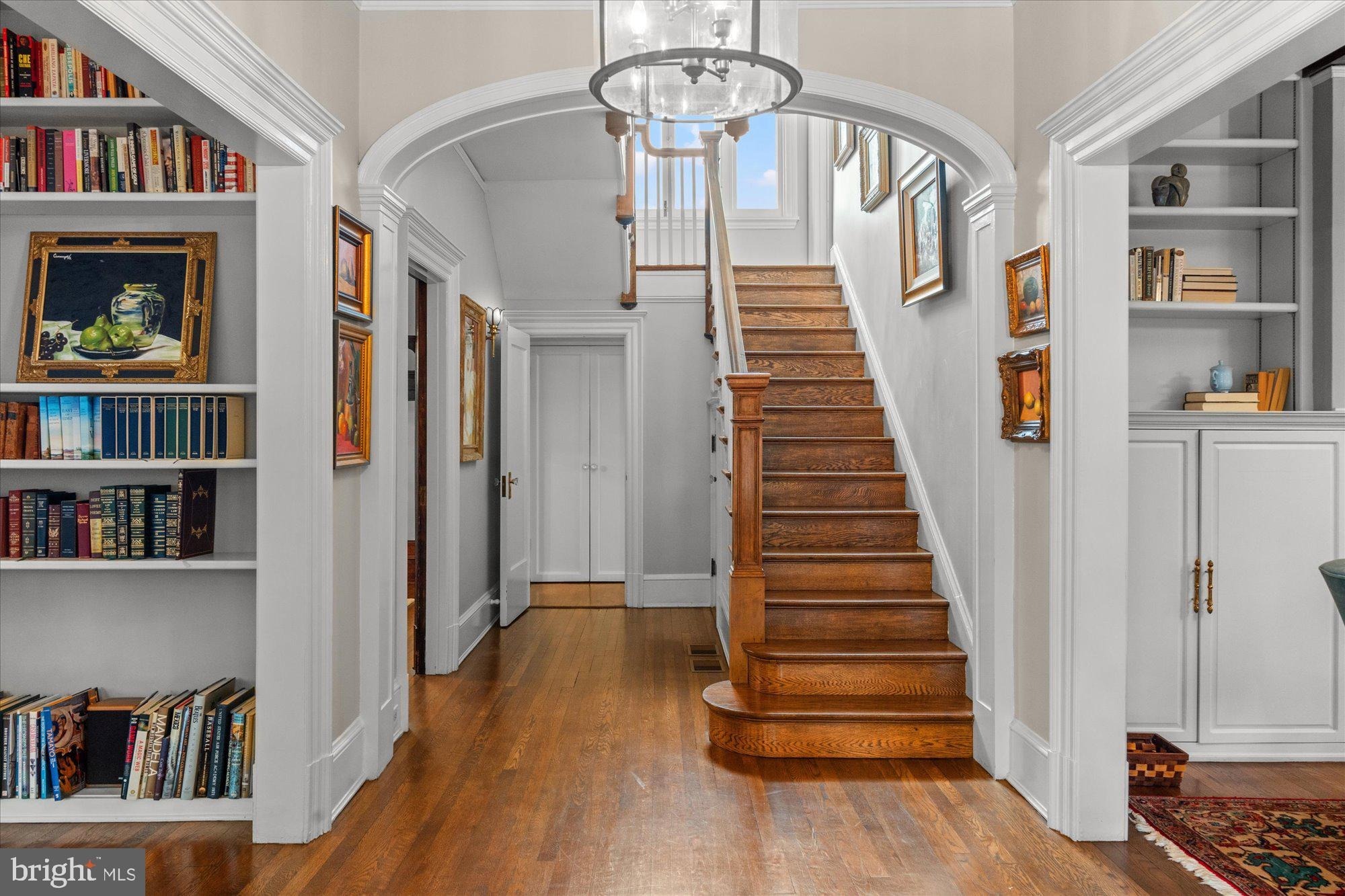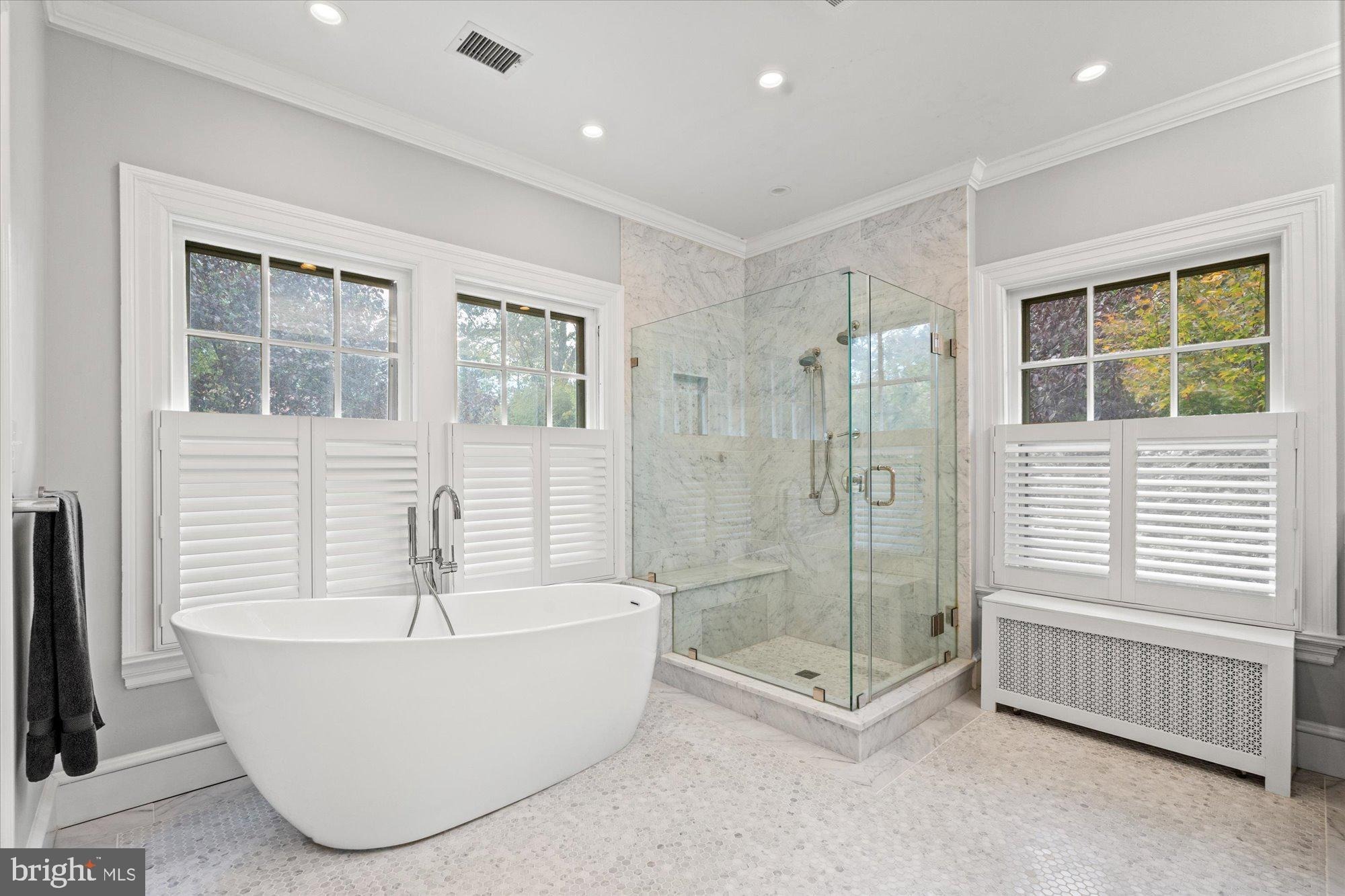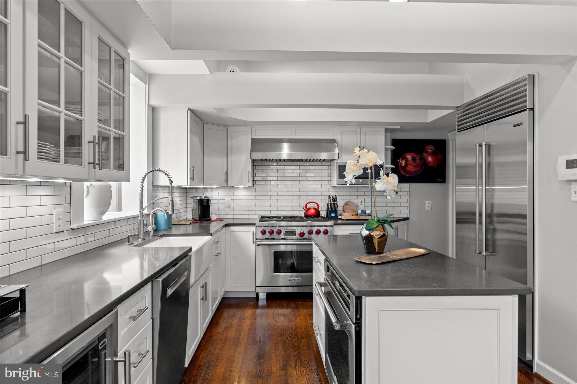 Welcome to this exquisitely renovated Colonial in the heart of sought-after Chevy Chase. Blending classic architectural charm with modern updates, this home showcases original details like stately columns, arched doorways, and soaring ceilings, all surrounded by lush, mature landscaping. Step through the elegant foyer into a warm and inviting living room with a wood-burning fireplace and access to a serene screened porch. The first floor also features a versatile den—perfect as an office or playroom—and a formal dining room with a bay window, beamed ceiling, and wainscoting, offering an ideal space for entertaining. The expansive chef’s kitchen impresses with white cabinetry, granite countertops, stainless steel appliances, and a wine refrigerator. A cozy breakfast nook with a wrap-around bench opens to the back deck, grilling area, and patio—an ideal setup for outdoor gatherings, with potential to add a grassy play space. Upstairs, the spacious primary suite features a sitting area, a walk-in closet plus a double closet, and a beautifully renovated bath with a double vanity, soaking tub, and walk-in shower with seating. Two additional bedrooms and a stylishly updated hall bath complete this level. The top floor offers even more flexibility with two bedrooms, an office area, and a full bath. The finished lower level adds a large recreation or guest room, a kitchenette, and a full bath—perfect for visitors or extended stays. Additional highlights include a one-car garage and off-street parking for two vehicles. Ideally located within walking distance of Murch Elementary, Deal Middle, and Jackson-Reed High, and just moments from shops, restaurants, parks, and the Metro, this Chevy Chase gem perfectly balances historic elegance with modern comfort and unbeatable walkability.